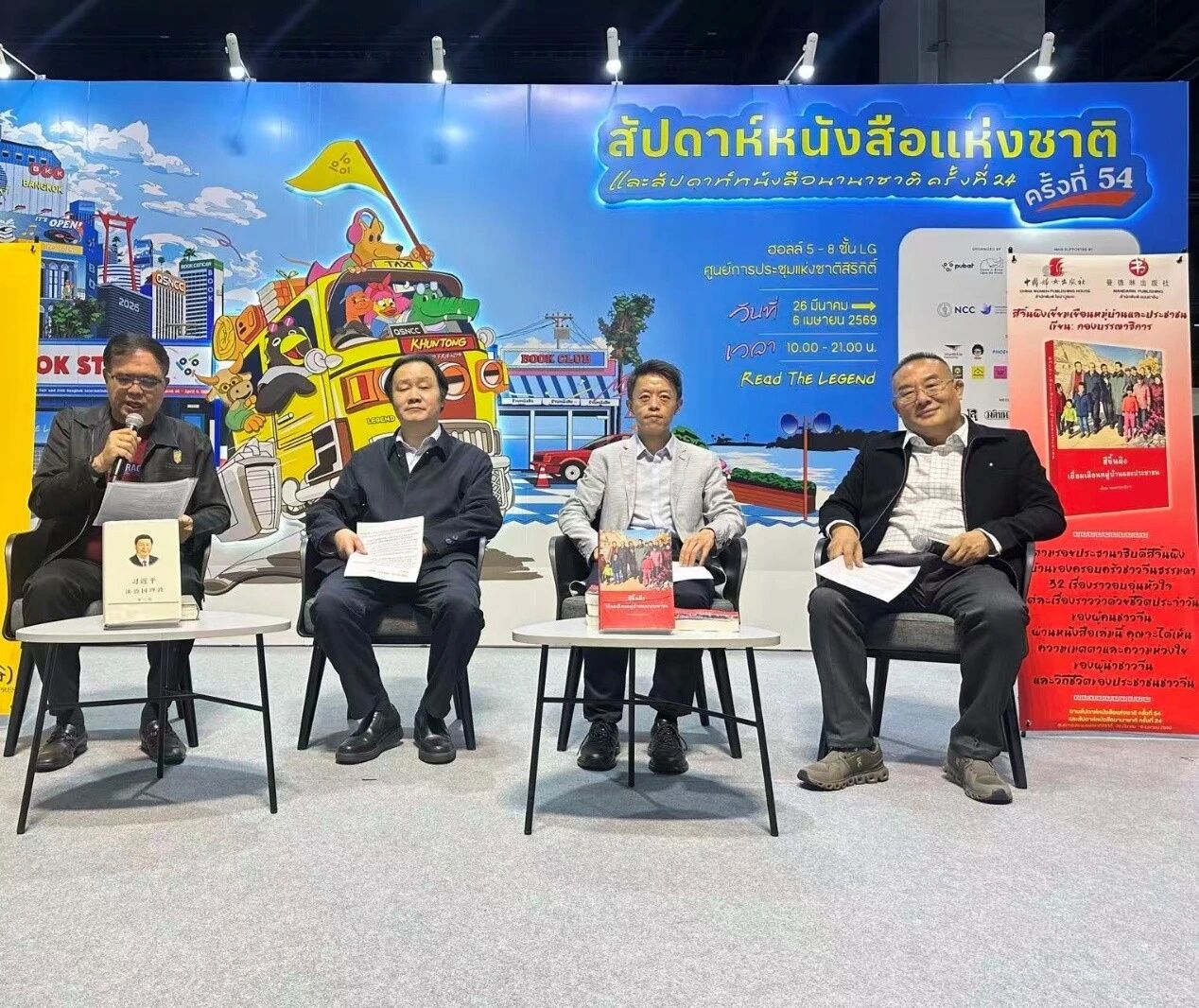 3月30日,在2026年泰国曼谷国际书展期间,江苏求真译林出版社联合中国妇女出版社、泰国PHETPRAGUY出版集团、泰国曼德琳出版社,举行《习近平走进百姓家》泰文版新书发布会。
