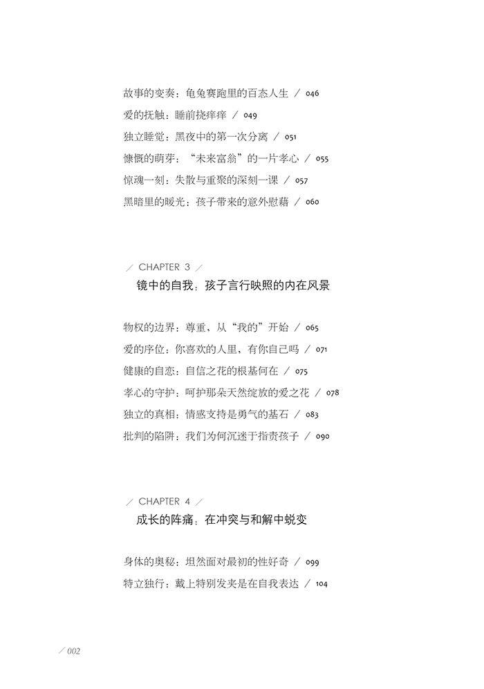 - 有“育儿理论”,更有“育儿方法论”:讨论分离焦虑、物权意识、性好奇、过度保护与指责陷阱、“牺牲式”养育、性别刻板印象等成长核心话题,帮助父母建立育儿的基本框架,理顺底层逻辑。