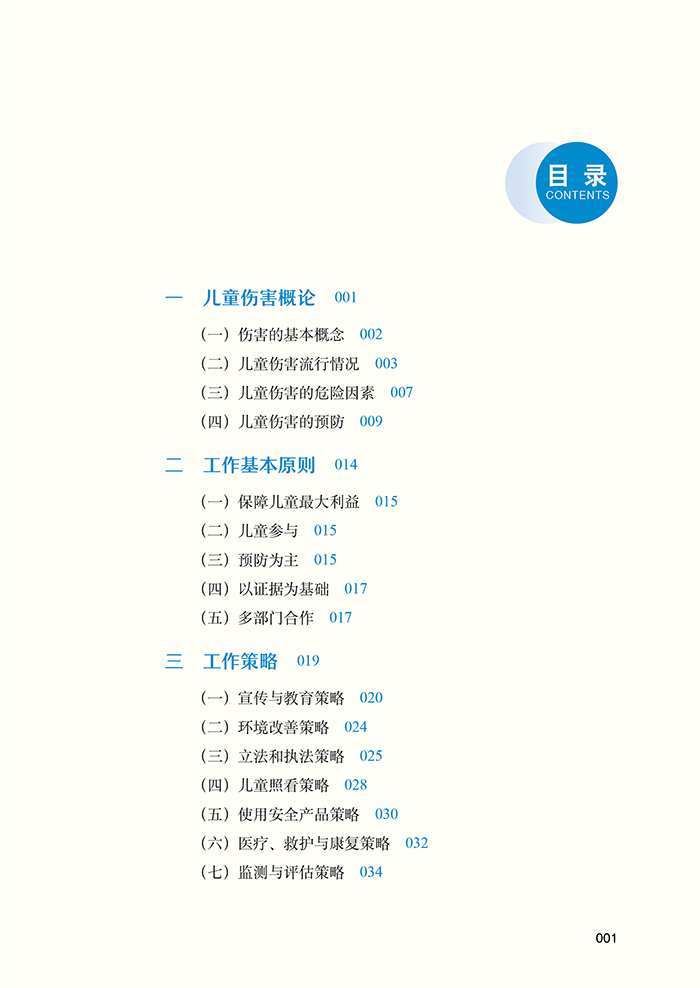 本书分为六部分:第一部分简要介绍了儿童伤害相关的概念和分类、流行情况、危险因素、预防控制等基础知识;第二至四部分从工作基本原则、工作策略、工作步骤方面介绍了设计实施儿童伤害预防控制工作的技术要点和要求;第五部分重点介绍了以社区、幼儿园/ 学校、家庭为基础开展儿童伤害预防控制工作的工作模式;第六部分展示了我国不同地区儿童伤害预防控制项目的工作实践案例。本书可供相关部门、群团组织,学校、幼儿园、托育机构、儿童早教培训机构,街道、乡镇、社区、村,医疗卫生、疾病预防控制机构工作人员,以及其他相关组织、机构工作人员参考使用。部分内容也适合家长、儿童照护者等阅读和参考。