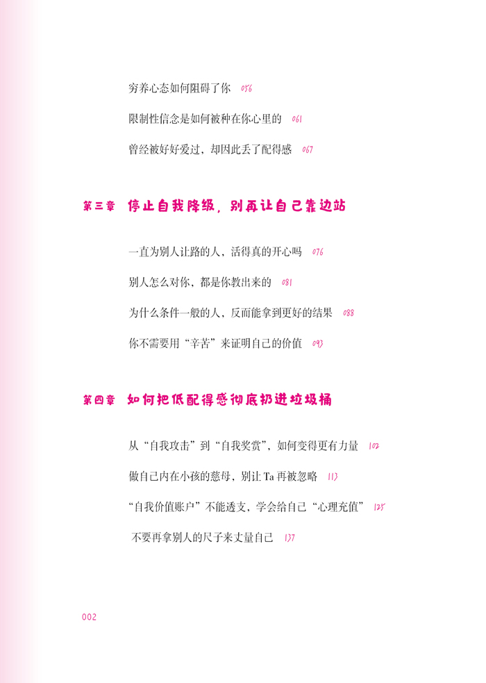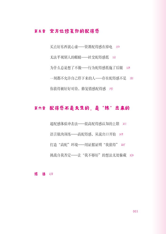 本书将帮你认清你的低配得感是如何被“养成”的,以及如何改变;彻底拆解低配得感的心理陷阱,让你不再自我怀疑;通过真实案例,揭秘那些高配得感的人是如何思考和行动的;给出超实用的心理训练方法,让你一点点 “练”出配得感,真正敢于争取自己想要的!