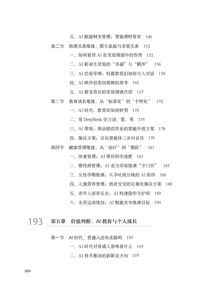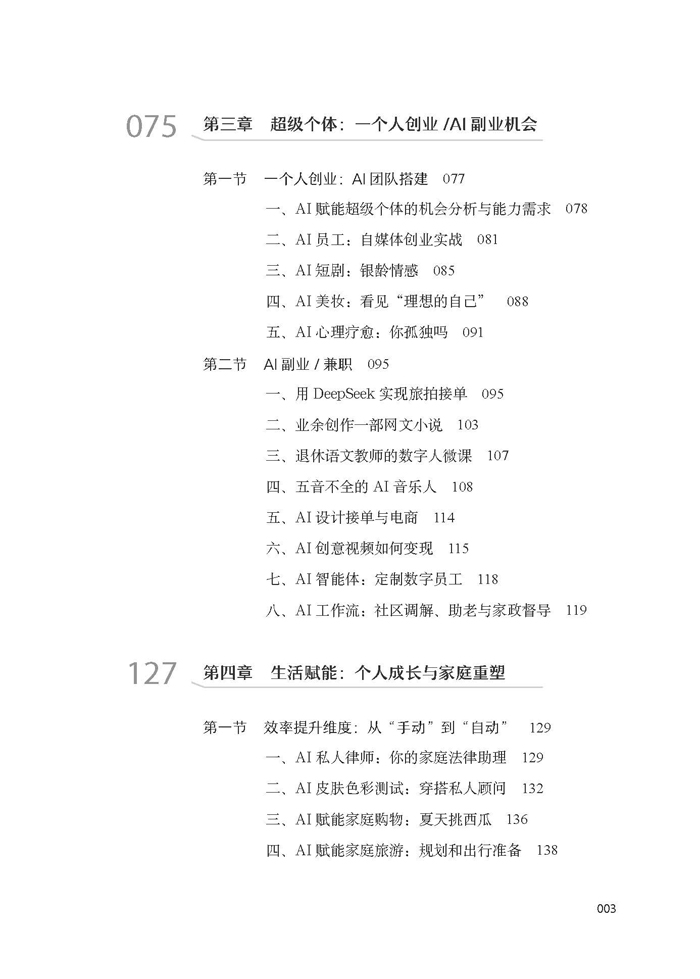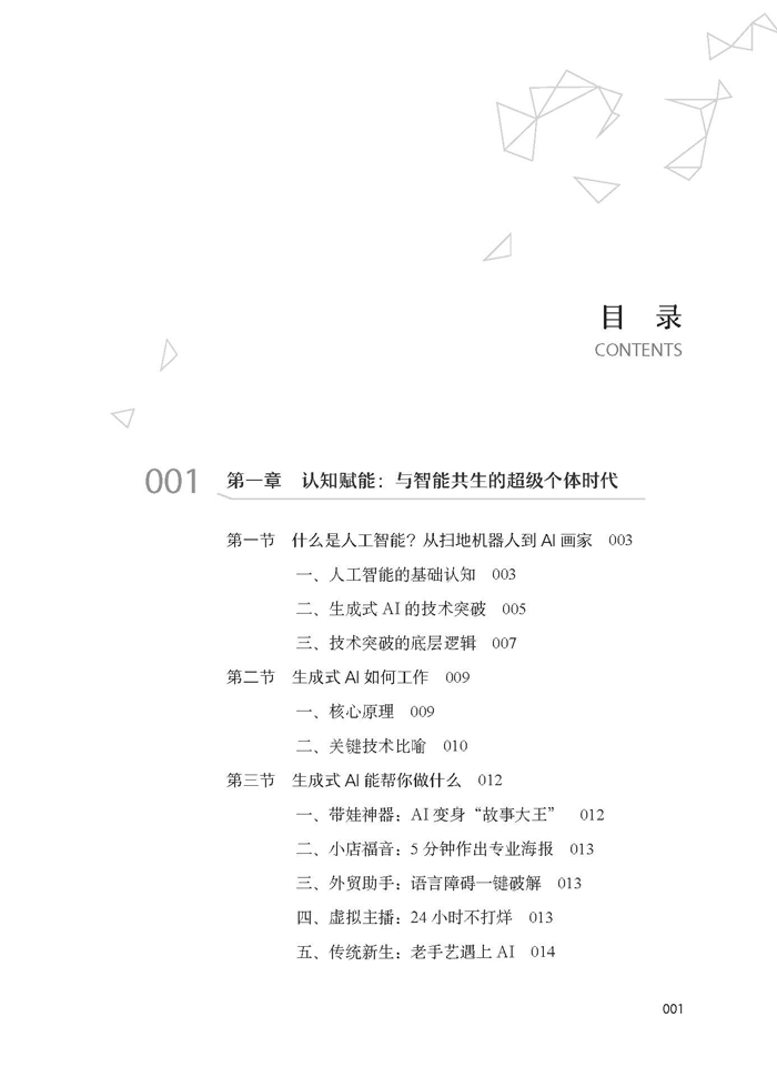 本书以生成式 AI 技术为核心,系统拆解职场转型、家庭重塑与个人跃迁的数字化路径,为女性提供从认知升级到实战应用的完整解决方案。通过 DeepSeek、即梦 AI 等本土化工具的场景化教学,读者可掌握智能简历优化、AI 副业创业、家庭健康管理等 12 大核心技能,书中更融入非遗数字化、银龄情感短剧创作等200 余个跨界案例,生动展现普通女性如何借力 AI 突破职业天花板、重构家庭分工模式。作者独创"认知赋能—效率革命—超级个体"三维模型,既深入剖析算法偏见、数据隐私等伦理挑战,又以"轻创业工作流""人机协同心法"等实操策略,助力女性在技术浪潮中把握"能力平权"机遇。