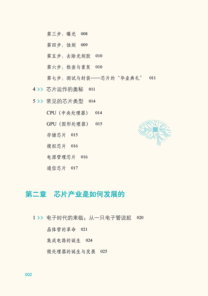 本书是一本面向青少年的科普读物,以生动有趣的语言,向孩子们介绍了神奇的芯片世界。从日常生活中无处不在的芯片出发,引导小读者们思考那些隐藏在各种设备中的高科技“大脑”。书中不仅讲述了制作芯片的基础材料——沙子是如何蜕变成硅晶圆,并进一步加工成复杂芯片的过程,还深入浅出地讲解了芯片的设计原理、生产步骤以及运作机制。