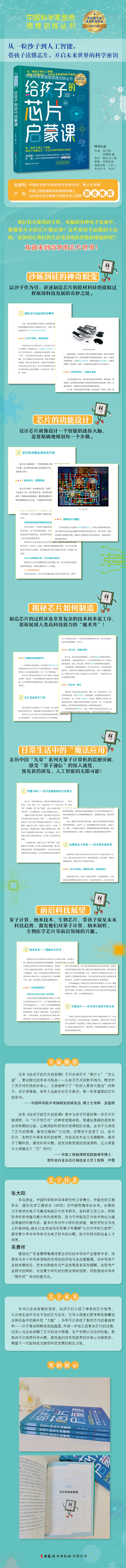 《给孩子的芯片启蒙课》不只讲芯片“是什么”“怎么造”,更讲述了它的未来与挑战——从量子芯片到数字鸿沟,既守护了孩子对科技的好奇心,又悄悄种下了“科技人要有大担当”的种子。孩子读得懂,成年人也能补补芯片常识,是一本有温度的芯片启蒙书。