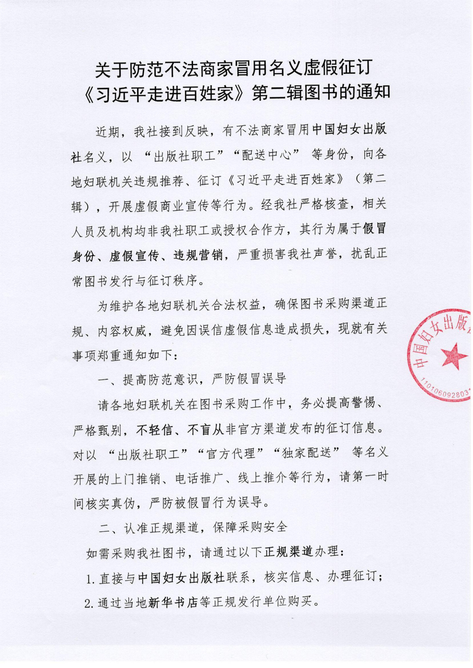 关于防范不法商家冒用名义虚假征订《习近平走进百姓家》第二辑图书的通知