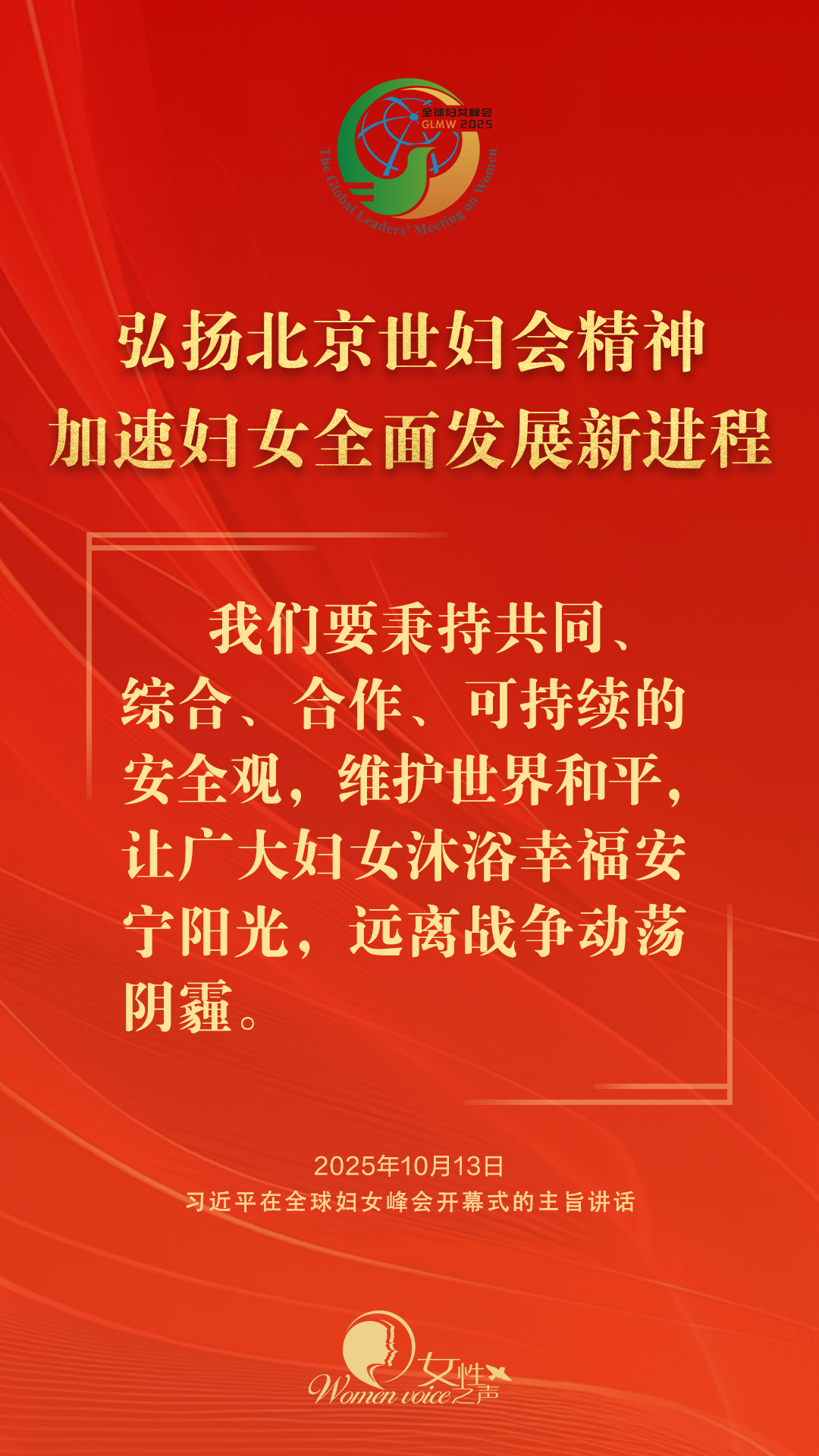 习近平主席全球妇女峰会重要讲话金句来了!
